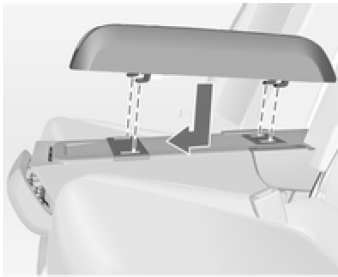 Abaisser l'arrière de l'accoudoir. Tirer fermement la poignée arrière et introduire les broches de guidage arrière dans les rails de guidage. Relâcher la poignée.